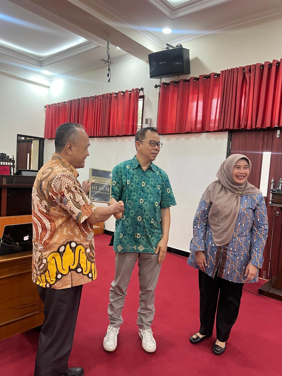 Shidarta, yang juga menjadi dosen di PDIH Undip, pada sesi pembukaan, memberikan kenang-kenangan kepada PDIH berupa buku karya terbarunya berjudul “Kecerdasan Artifisial dalam Hukum Keperdataan” yang diterima oleh Kaprodi PDIH Dr. Sukirno, S.H., M.Si. (***)