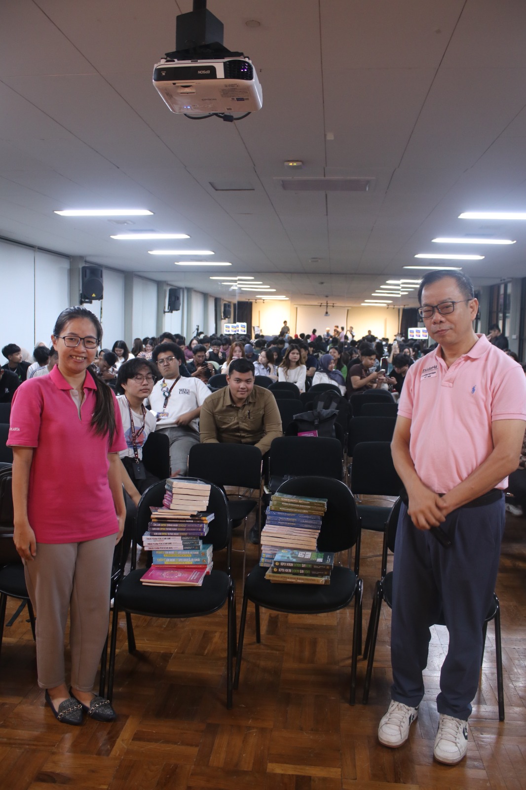 Acara yang dihadiri sekitar 200 mahasiswa dan undangan ini berlangsung sejak pukul 09.00 pagi, dan ditutup pada pukul 16.00. Pada akhir acara, diadakan sesi foto bersama antara dosen, narasumber, dan panitia. Mereka tampak terkesan dengan acara tersebut, khususnya bagi para panitia yang juga berkesempatan menerima kenangan, masing-masing satu buku karya dosen yang dipamerkan. (***)