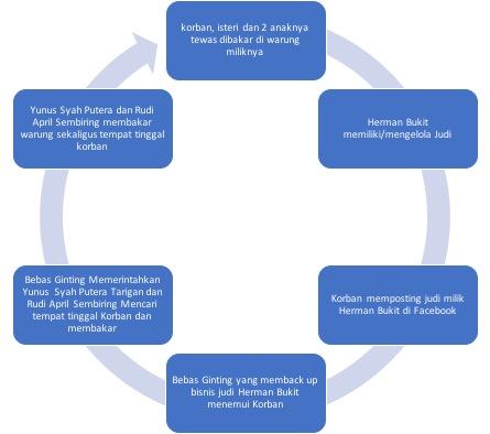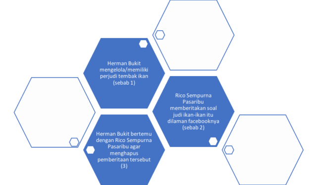 Hakim dalam pertimbangannya tidak merangkai fakta secara teratur dan sistematis, namun melompat-lompat. Peristiwa yang harusnya dirangkai adalah dimulai dari kepemilikan judi oleh Herman Bukit, postingan facebook yang dilakukan oleh korban Rico tentang kepemilikan judi tersebut, jika digambarkan sebagai berikut: