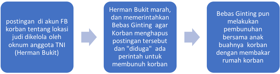 - postingan di akun Facebook milik korban tentang adanya perjudian di Jln. Kapten Bom Ginting yang merupakan miliki Oknum TNI berpangkat Koput Anggota Bataylion 125 SIM Bisa, potingan ini terjadi pada tanggal 22 Juni 2024. Oknum TNI yang dimaksudkan dalam postingan ini adalah milik Herman Bukit. Tentu saja Herman Bukit tidak senang dengan postingan tersebut dan meminta “orang-orangnya” mencari rumah korban alm. Sempurna Pasaribu.