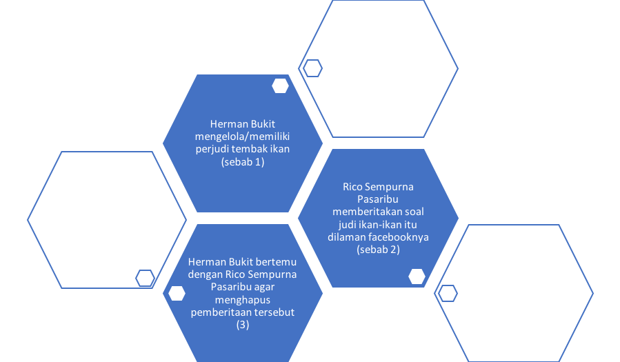 Hakim dalam pertimbangannya tidak merangkai fakta secara teratur dan sistematis, namun melompat-lompat. Peristiwa yang harusnya dirangkai adalah dimulai dari kepemilikan judi oleh Herman Bukit, postingan facebook yang dilakukan oleh korban Rico tentang kepemilikan judi tersebut, jika digambarkan sebagai berikut: